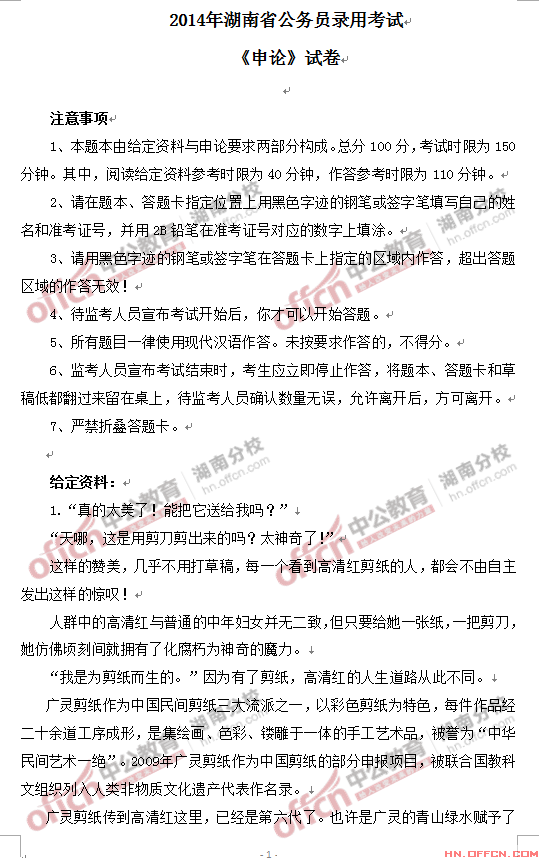 【相关文章】2014年湖南公务员考试申论真题答案解析